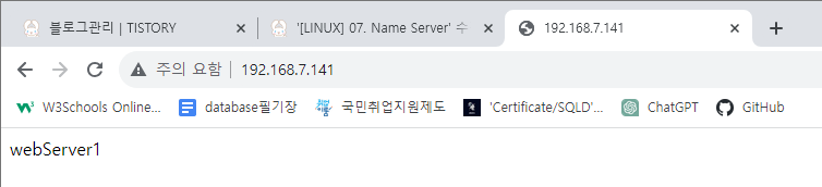 윈도우 웹 브라우저에서 WebServer의 IP주소를 입력(192.168.7.141)