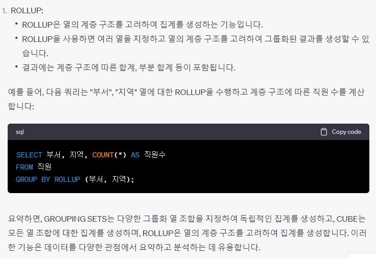 그룹핑셋이랑 큐브랑 롤업 차이 몰라!!!!!!!!!!!!!!!