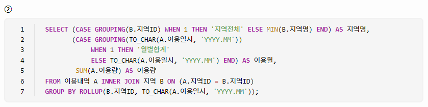 지역에 대해서 월별 이용량 및 소계와 전체 이용량을 출력했다