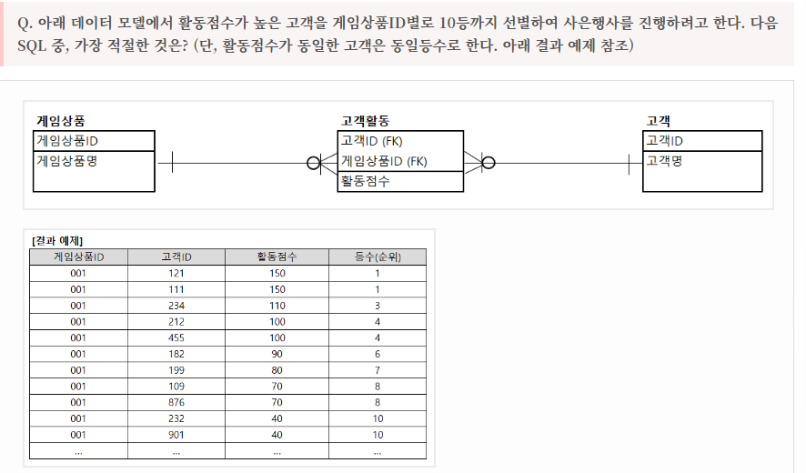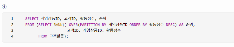 문제가 게임상품ID별로 활동점수로 순위를 추출하는 것이기 때문에 PARTITION 함수가 있어야 함!!